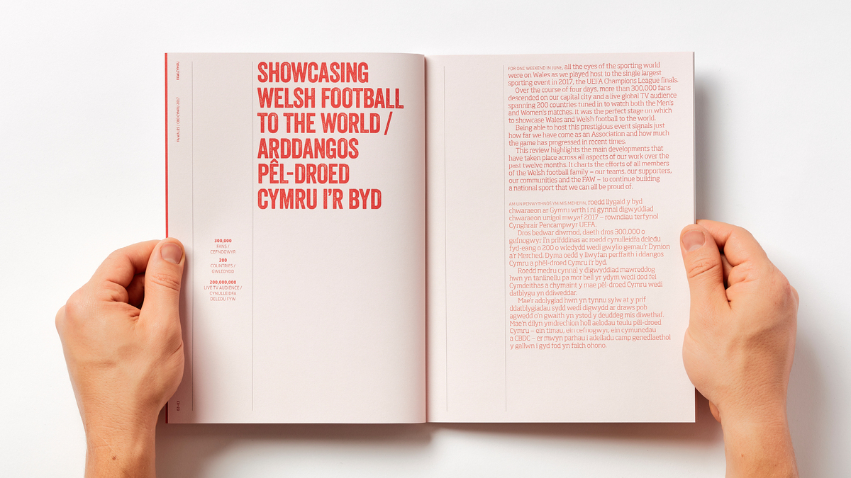 Annual reviews can often be a bit corporate, and a little bit dull. So we really gave our 110% not to go there with these guys. Wales was experiencing so many good times on the pitch that the good vibes were felt across the whole nation. We created reviews that aimed to capture this feel-good factor with people at the heart of the joy. Delivering on all the important stuff, but also expressing the verve and excitement that we all felt well after the final whistle.
