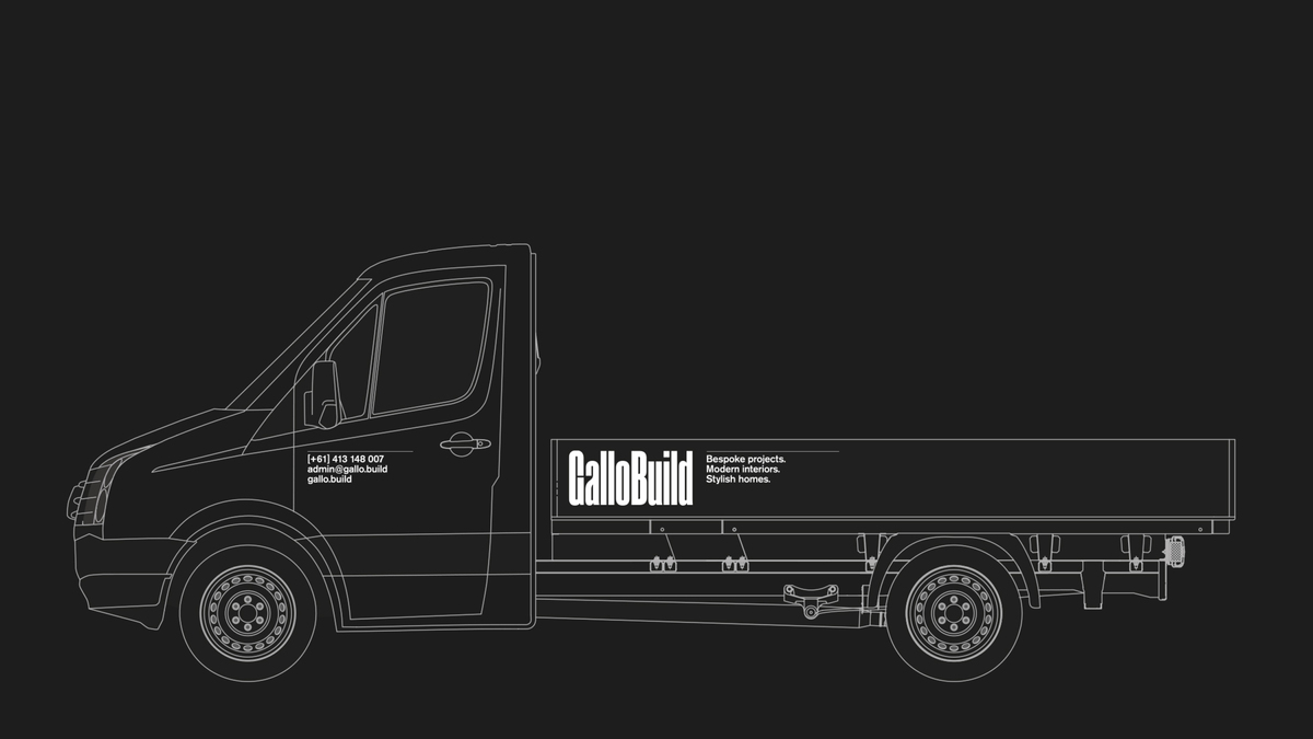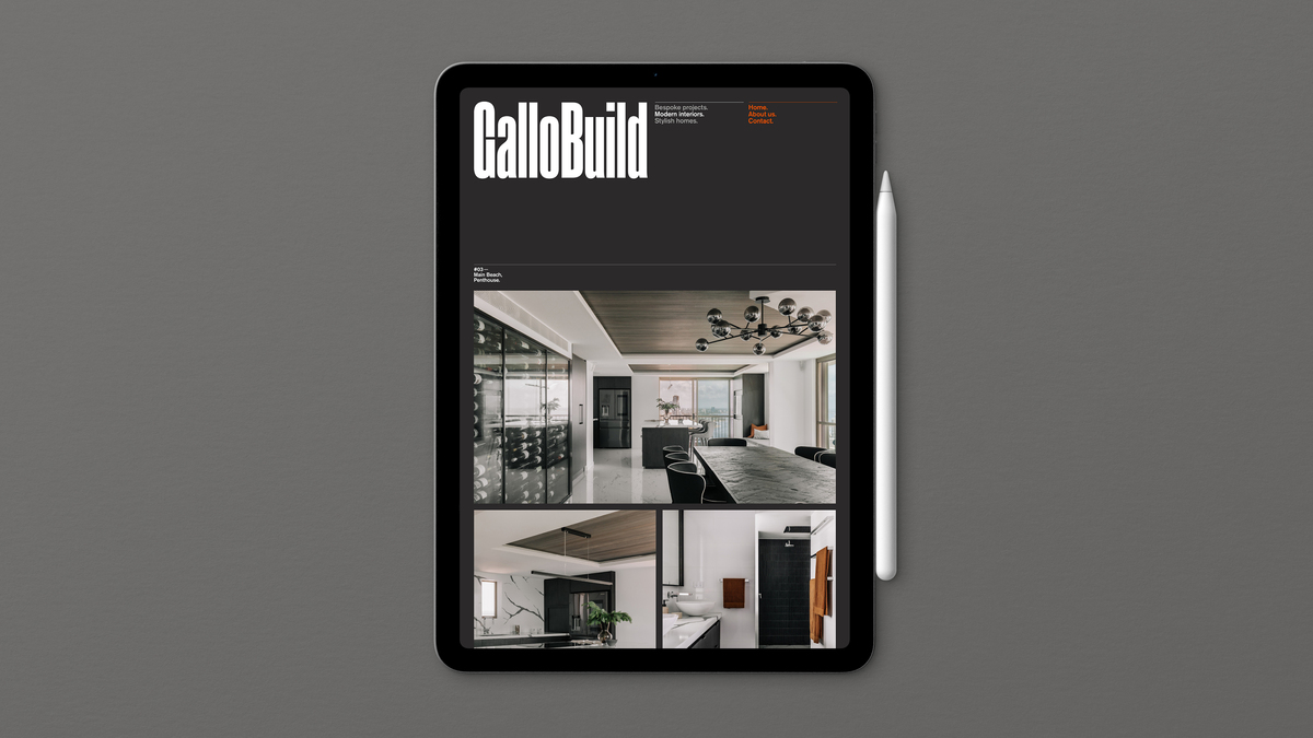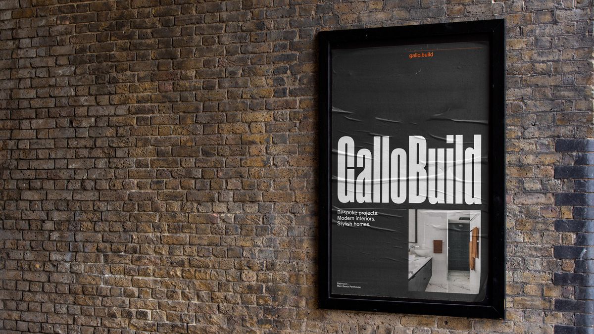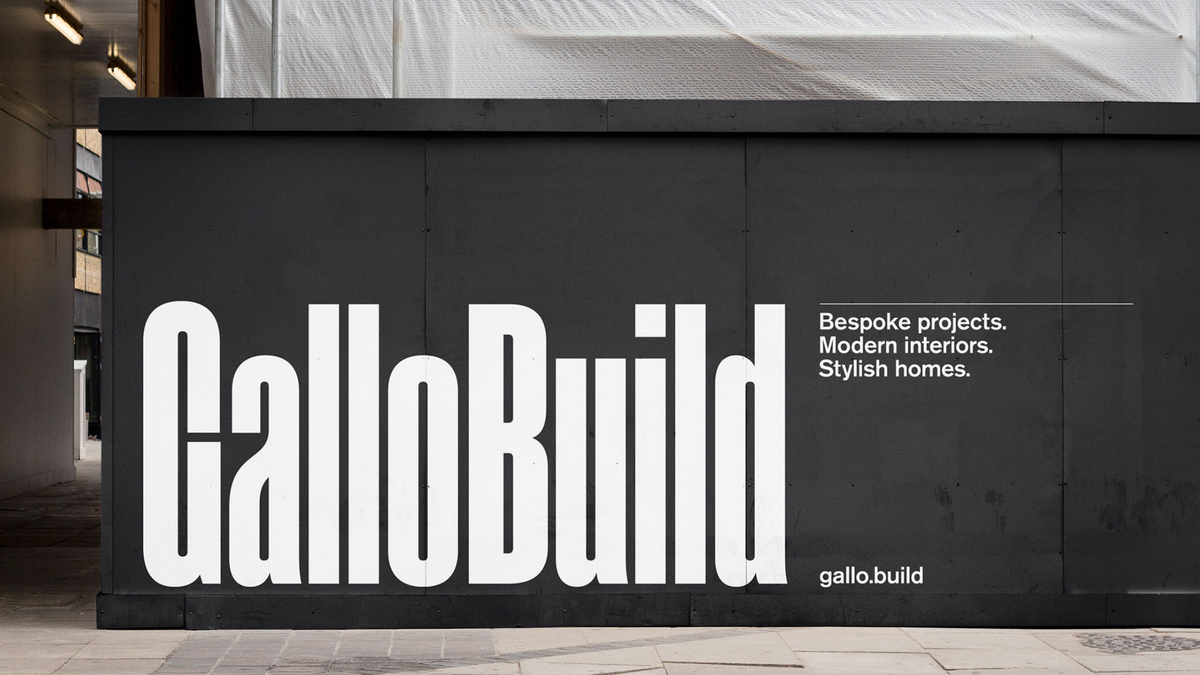GalloBuild... builds bespoke projects, modern interiors, and stylish homes. So we built them a bold and architectural identity that communicated exactly that. A robust logo with presence on a website, as well as the building site.
